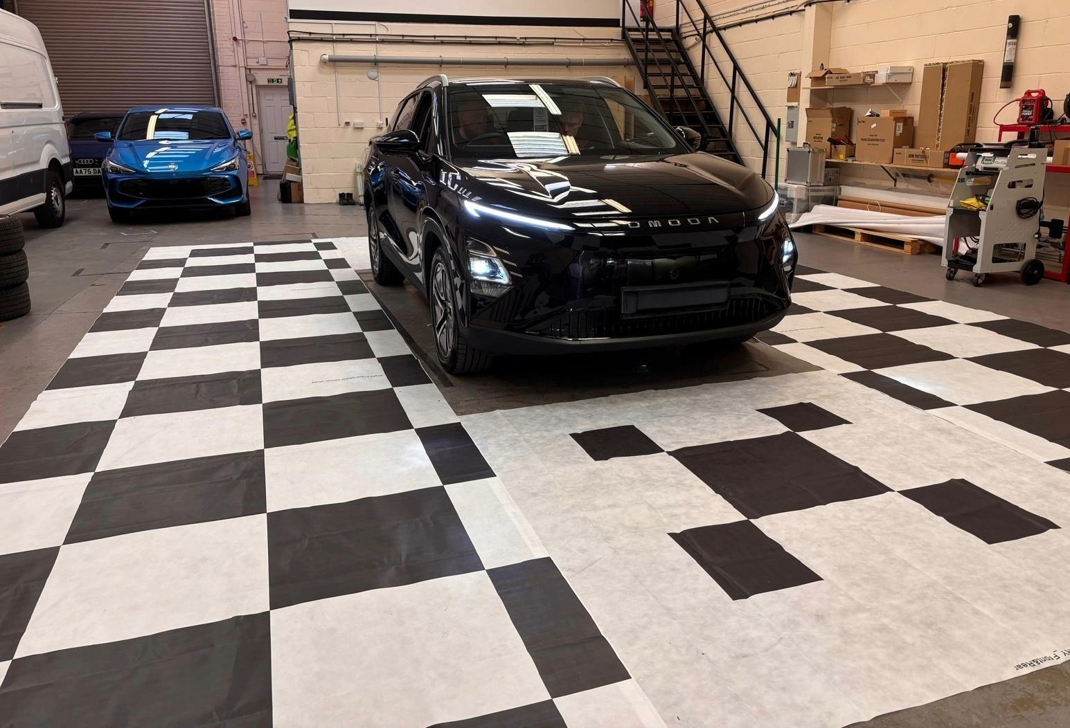 Calibrating 360 surround-view cameras to OEM standards requires a level workshop with controlled lighting and enough space for precise mat placement. The area needed varies greatly between makes and models. A Nissan Leaf typically requires a clear working area of 24m², and this increases to nearly 100m² for some BYD models.
